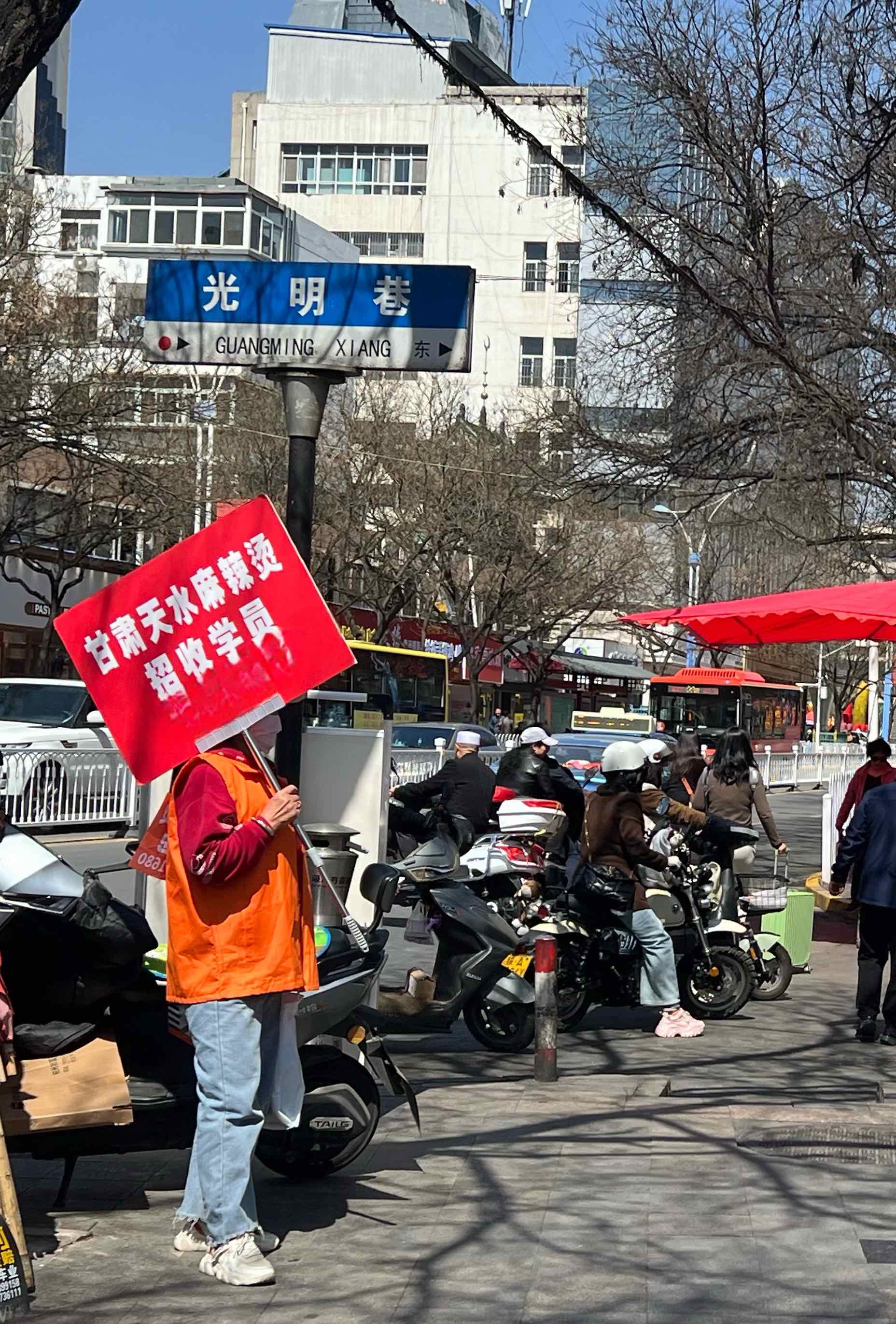 行走在大众中路上,不时能看到有人举着牌子,上面写着“甘肃天水麻辣烫 招收学员”,并附着电话。记者上前询问后得知,甘肃麻辣烫爆火后,有不少人专门来取经,希望能够在其他地区也开一家麻辣烫店。因此,衍生出了这样的产业。“两三天就能学会,学费6800元。”