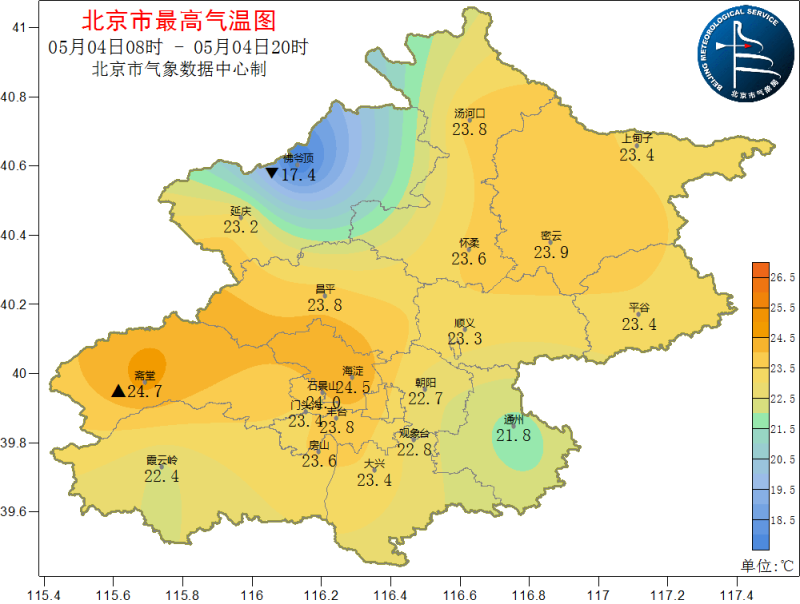 5月7日白天(周二):多云转晴;北转南风2、3级;平原地区最高气温28℃,山区最高气温26~28℃。