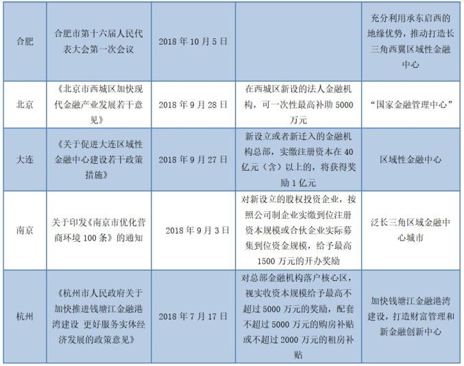 除了对金融机构总部和相关人才落户在财税、土地等方面给予大力支持外,推动金融中心建设,利用自身资源禀赋、区域特色和产业特点发力,抢滩金融中心的竞争在城市间也颇为激烈。