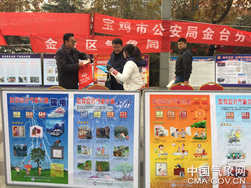 中国气象报通讯员赵良军报道 12月2日上午,陕西省宝鸡市金台区气象局积极参加由区委、区政府举办的国家宪法日暨全国法制宣传日集中宣传活动,组织工作人员在金台市民中心广场举行气象法治宣传活动。
