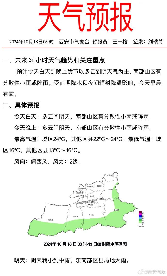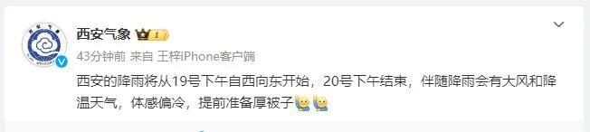 西安的降雨将从明天(19日)下午