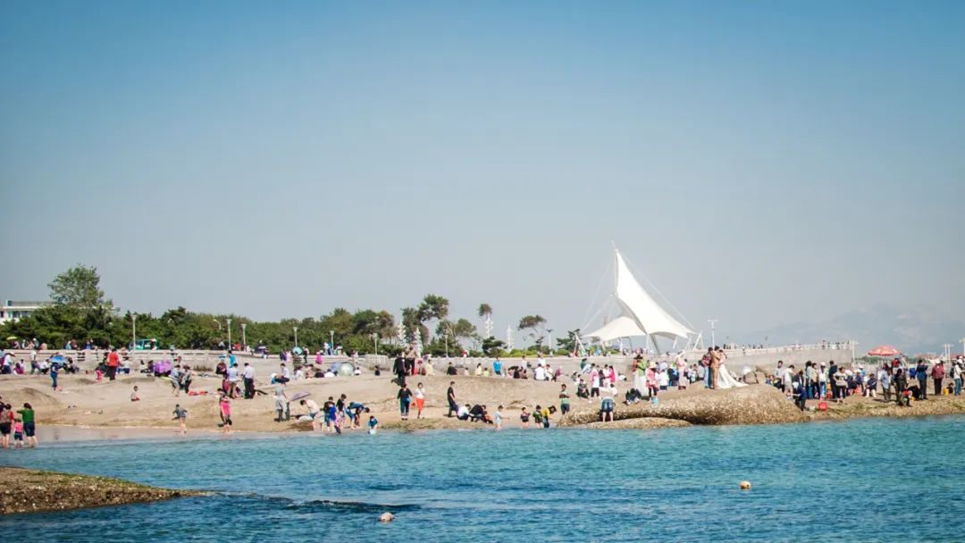 太公岛牡蛎公园,日照免费赶海的好去处,这里的沙子很细,礁石比较多,可以撬牡蛎,也可以在浅水区捡贝壳,落潮的时候,正是赶海的好时候,不用花钱就能收获超多海鲜~