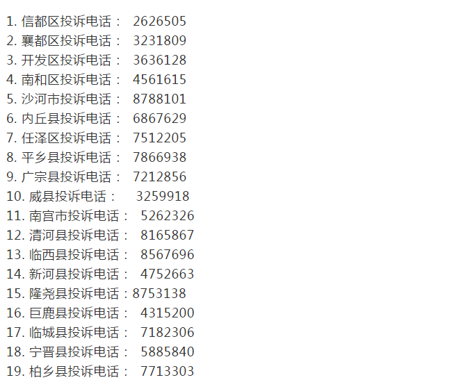 同时,邢台市供热办也已建立供热监督投诉举报平台,多种方式接受居民反映供热投诉问题。其中,24小时投诉电话:2290018;投诉短信:17732924420(不设人工接听);投诉邮箱:xtgrts@163.com;微信公众号:邢台供热管理。