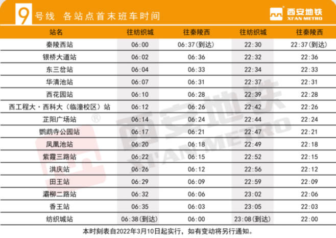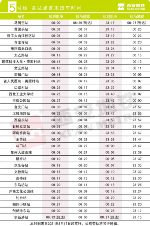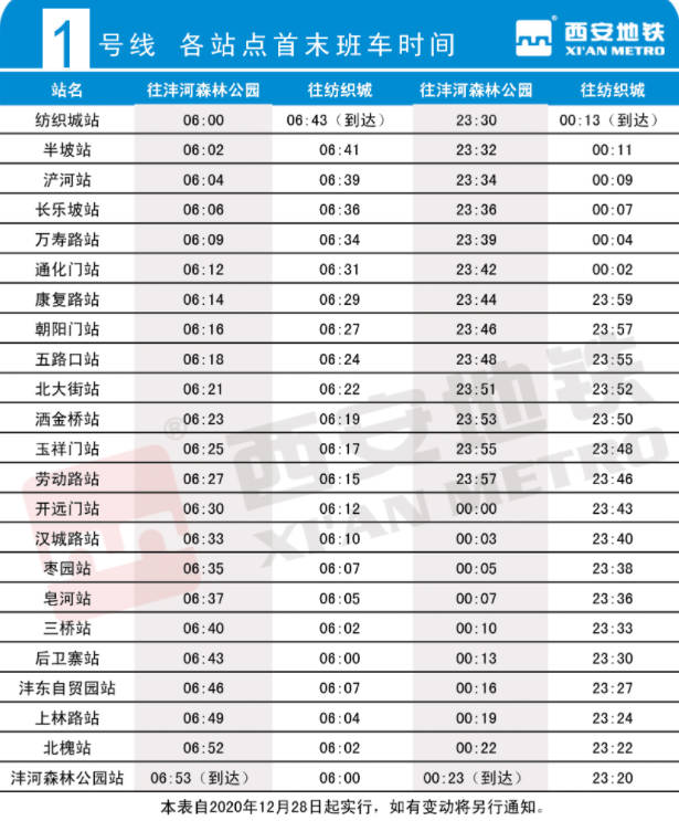 西安地铁各个线路首末班车时间1、西安地铁1号线几点开始到几点结束
