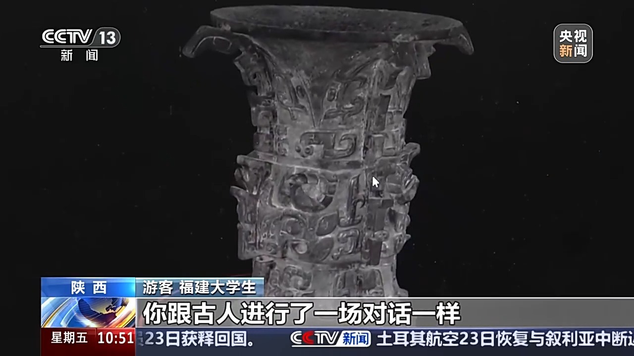 游客 福建大学生:看到何尊,给我第一感觉就是震撼,感觉跨越3000多年的时光跟古人进行了一场对话一样。