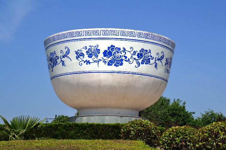 下车后首先映入眼帘的是十字路口大转盘上的巨型大老碗雕塑