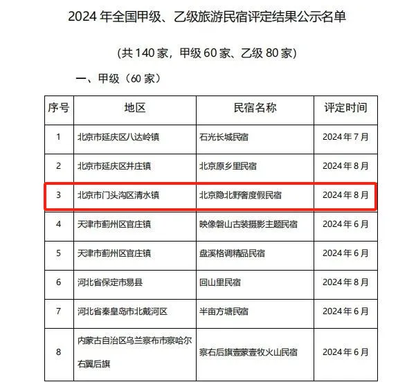 全国甲级民宿,门头沟+1