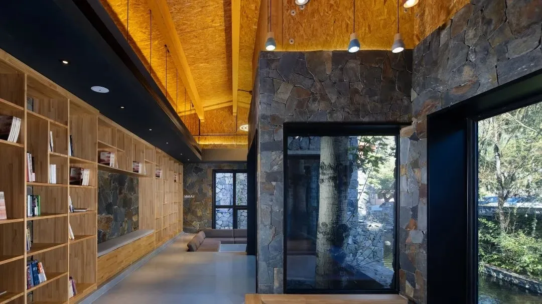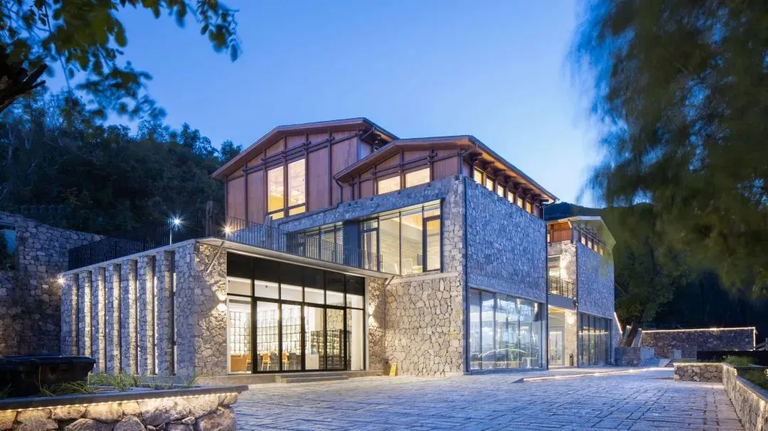 民宿整体建筑风格,采用改良后的传统垒砌法,就近取山间原石,因形构建坚固粗犷的墙壁、院墙、阶梯、扶廊,彰显原生态的苍劲;又以原木构件作柱作顶,平添一番木质的温柔。在北方民居的基础上,更吸取纳西民居特色,通过简化提炼,形成独具旨趣的现代中式风格。