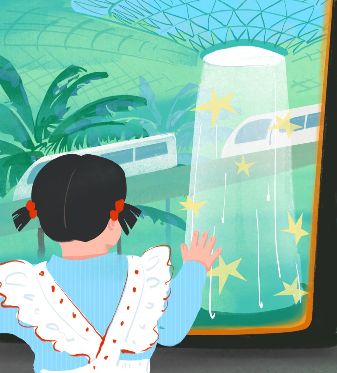 疯狂动物城照进现实,一家人坐上Skytrain穿进雨林瀑布,把机场逛成迪士尼,兔朱迪同款拍照打卡+1。