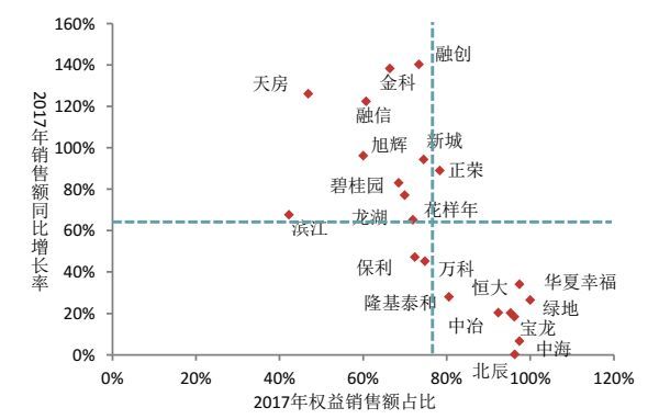 图10 百强代表企业2017年销售额同比增长率与权益比例情况