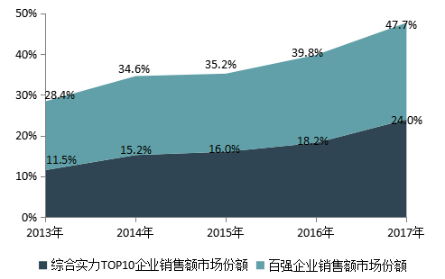 百强企业2017年销售额增长32.8%,市场份额提升至47.7%
