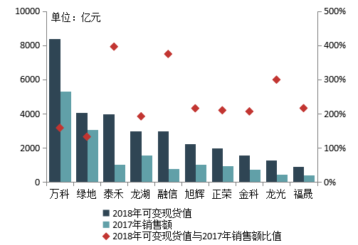 房企的土储可变现能力是房企在未来竞争中胜出的重要筹码。规模较大的百强企业不断强化土地储备、补充较多货值,保障本身销售规模的同时维持稳定的销售增速。规模中等的百强企业集中发力,在2017年实现销售业绩大幅跨越的基础上加快土地储备、储备更加充足的货值,以期销售规模再上台阶。
