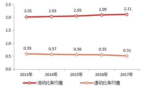 图29 百强企业2013-2017年流动比率与速动比率均值