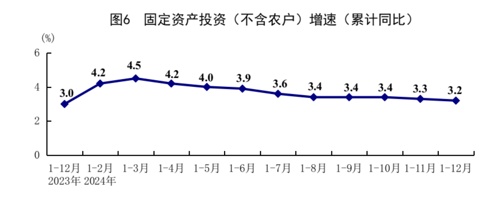 2024年全年全国固定资产投资比上年增长3.2% 图片来源:国家统计局