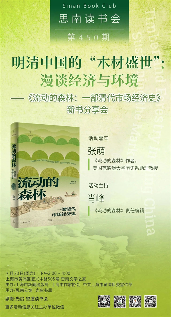 上海|明清中国的“木材盛世”:漫谈经济与环境——《流动的森林:一部清代市场经济史》新书分享会