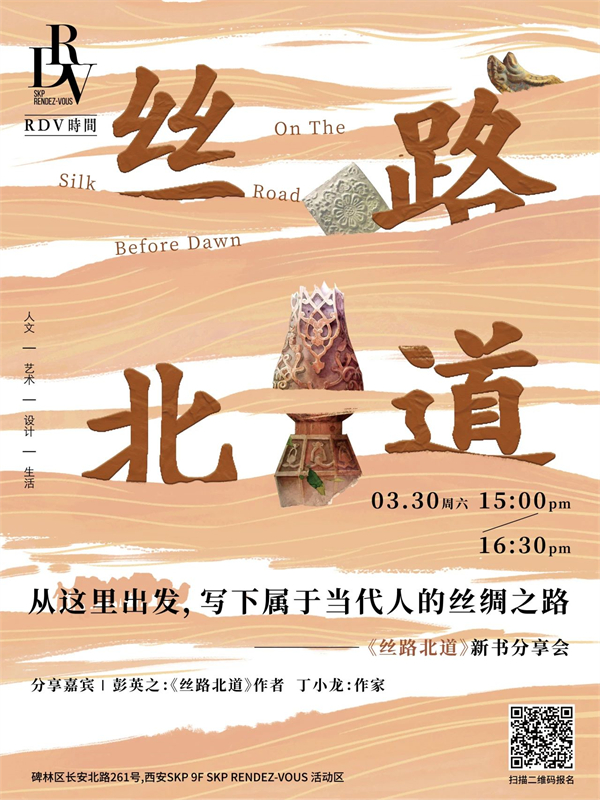 2017年9月,彭英之只身从西安出发,开始了丝路的旅程。其后他动笔将这段难忘的旅程变成了文字。3月30日,我们特别邀请到《丝路北道》作者彭英之,作家、北京师范大学文学硕士丁小龙做客西安SKP,重回起点西安,与读者共同回顾这段难忘的旅程。人生如逆旅,我亦是行人。