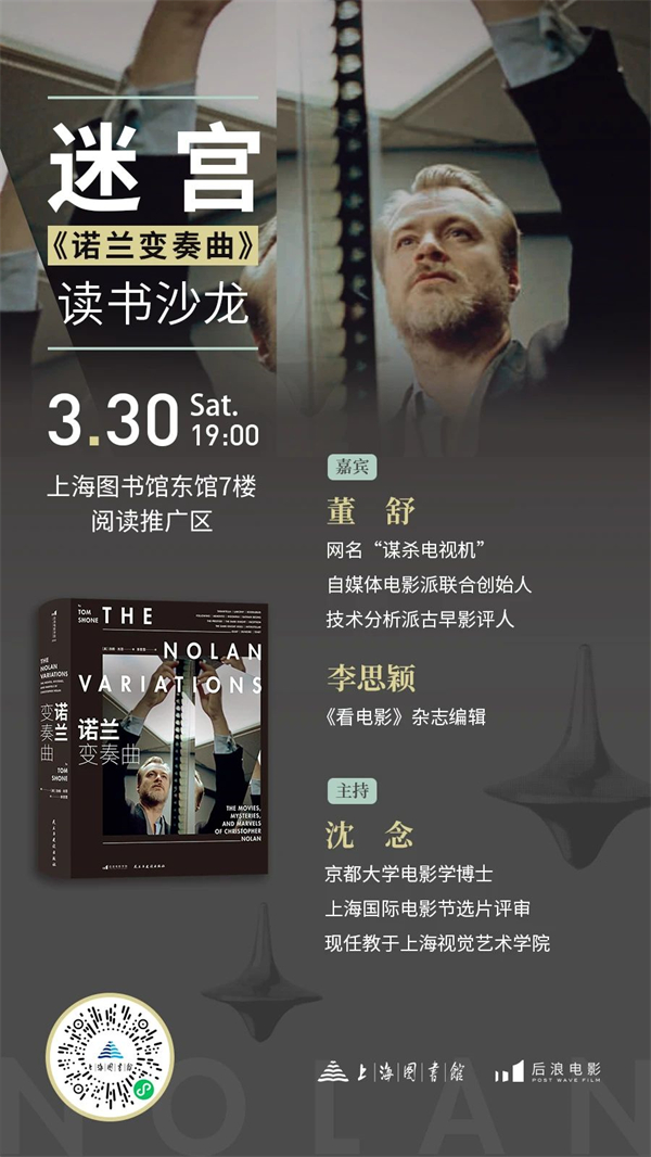 3月30日晚,董舒、李思颖、沈念三位嘉宾,在上海图书馆东馆从《诺兰变奏曲》开始,邀你一起走进这座名为“诺兰”的曲折迷宫。