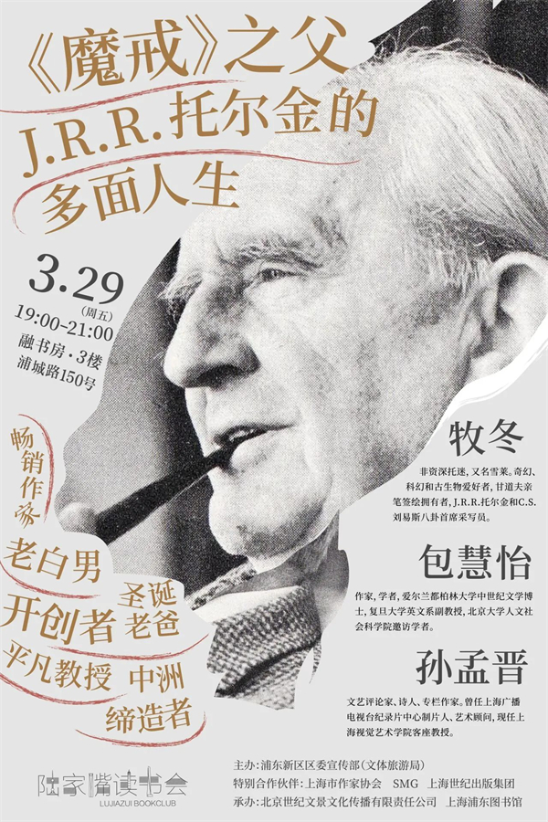 周五晚,我们邀请到资深托迷、《托尔金传》译者牧冬(雪莱),作家、学者、复旦大学英语系副教授包慧怡,文艺评论家、诗人、专栏作家孙孟晋,和大家一起聊聊身份多重、天赋出众、性格多面的世纪作家、《魔戒》之父托尔金,聊聊那些你不一定知道的严肃八卦和不严肃人生片段。