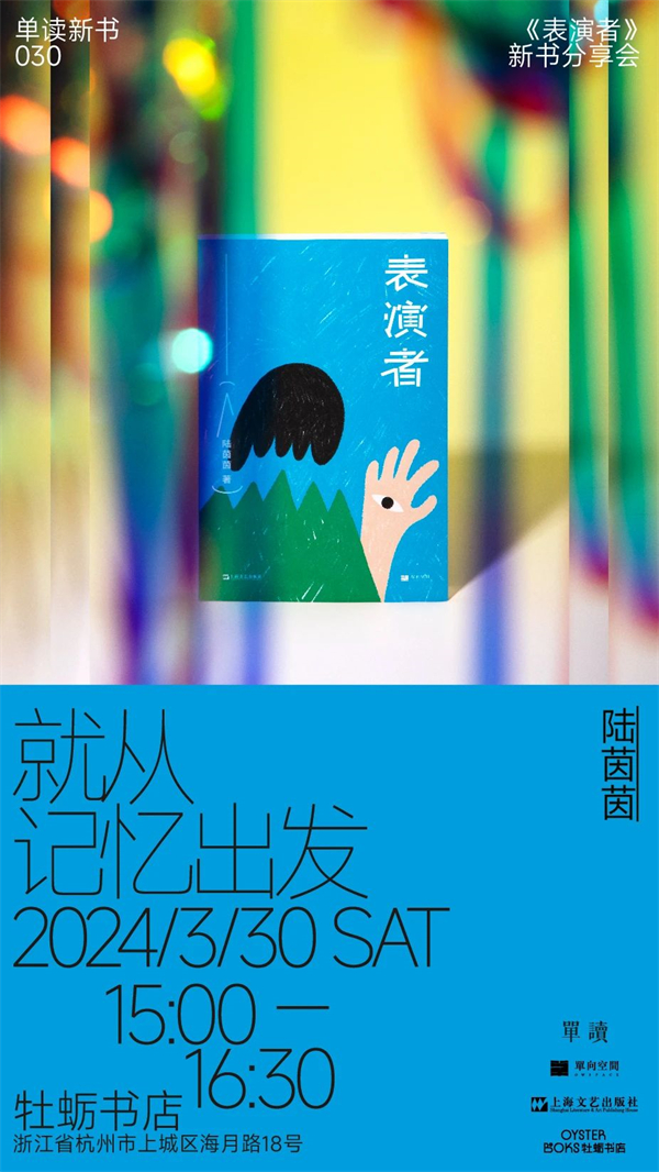 3月30日,《表演者》的作者陆茵茵将来到牡蛎书店,和读者一起重新置身于书中的十二幕生活剧场,尝试回答从中提取出的生活选择题,从记忆出发,抵达一个真实且丰富的自我。
