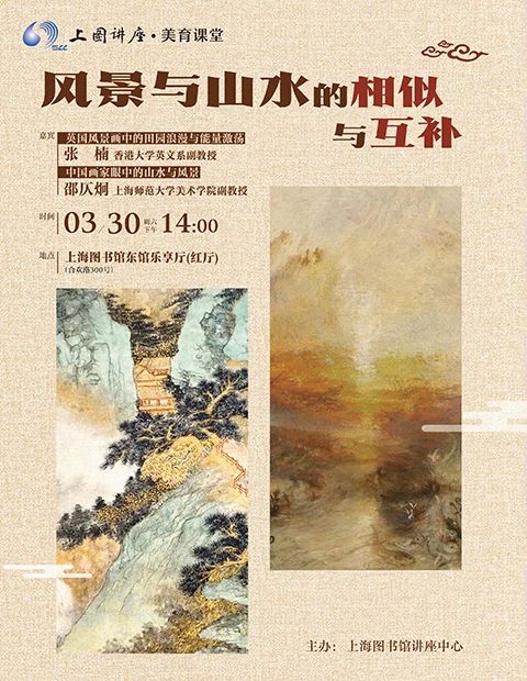风景画(指西方以自然风景为题材的绘画)与山水画(以山水风光为题材的传统水墨画)经常被放在一起讨论,正基于它们使用了相同的母题,有着人类共通的体验,又因各自不同的文化哲学体系,呈现出不一样的表现方式与审美诉求。本次讲座,来自香港大学英文系的张楠副教授与上海师范大学美术学院的邵仄炯副教授,将聚焦18世纪末至20世纪初的英国与中国,分别从艺术史、文学史、创作与批评等多角度来阐释东西方不同文化背景下绘画艺术的不同特性,并试图探讨两者的相似、互补与交融。
