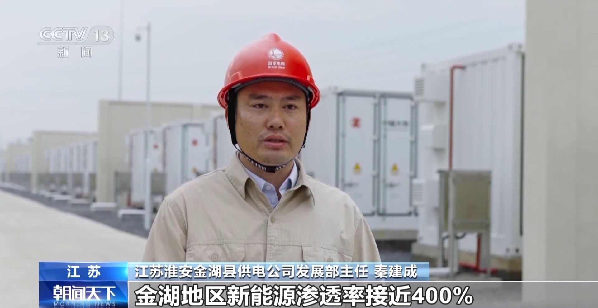 江苏淮安金湖县供电公司发展部主任 秦建成:金湖地区新能源渗透率接近400%。中城大有储能电站的投运,为新能源就地就近消纳提供更大支撑,对建设高比例绿电消纳的区域自治电网具有重要意义。