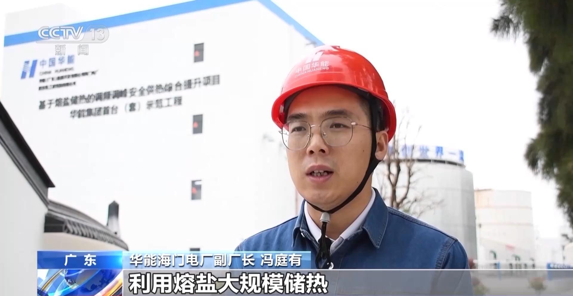 华能海门电厂副厂长 冯庭有:利用熔盐大规模储热可实现机组安全灵活运行,每年可增加新能源消纳电量3亿千瓦时,减排二氧化碳24万吨。