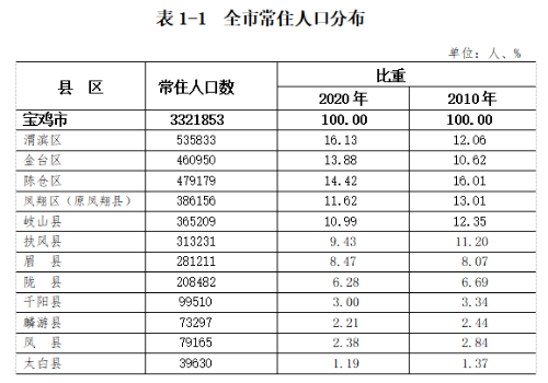 (陕西省)宝鸡市第七次全国人口普查公报(县区人口分布)