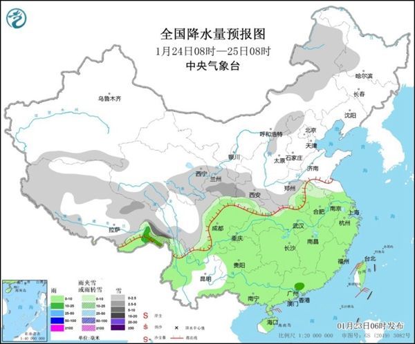 展望后期,1月25日至28日,我国中东部大部地区还将有一次大范围雨雪天气过程,尤其需要注意的是甘肃南部、陕西南部、河南南部、安徽、湖北、湖南北部、贵州北部等地部分地区或将有大到暴雪、局地甚至可能出现大暴雪;湖北西南部、贵州中北部、湖南西部分地区则需要警惕冻雨现身。在这轮降水过程中,随着气温下降,1月27日以后降雪区还可能会南压,因此长江流域部分地区可能雨雪混杂,上述地区公众需关注临近预报,做好相关防护工作。