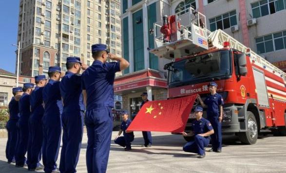 4)9月30日下午,郑州市天明路消防救援站全体指战员用无人机拍摄与国旗同框照片,表达对祖国的祝福!