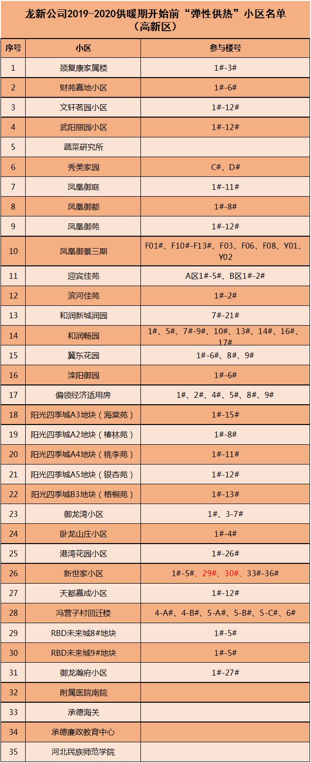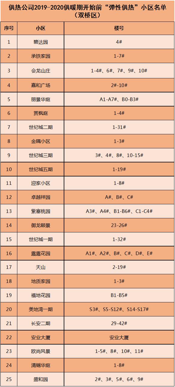 另外,上面提到今年弹性供热试点将覆盖60个居民小区(特别说明:实施弹性供热的小区需要满足现有热源和管网运行技术条件且具备完善供热计量设施按照供热计量收费。)具体是哪些小区呢?我们一起来了解一下↓