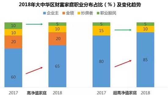引人注意的是,企业的拥有者占比较上年增加5个百分点;职业股民占比较上年减少5个百分点。金领、炒房者占比较上年均未发生变化。