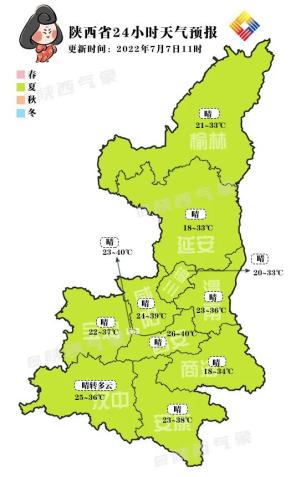 今天下午:全省晴天间多云,汉中南部局地有阵雨。陕北东部、关中大部、陕南大部有35℃以上高温天气,陕北黄河沿线、关中南部、陕南南部最高气温可达38-40℃,局地40℃以上。陕北中北部有4-5级偏南风。