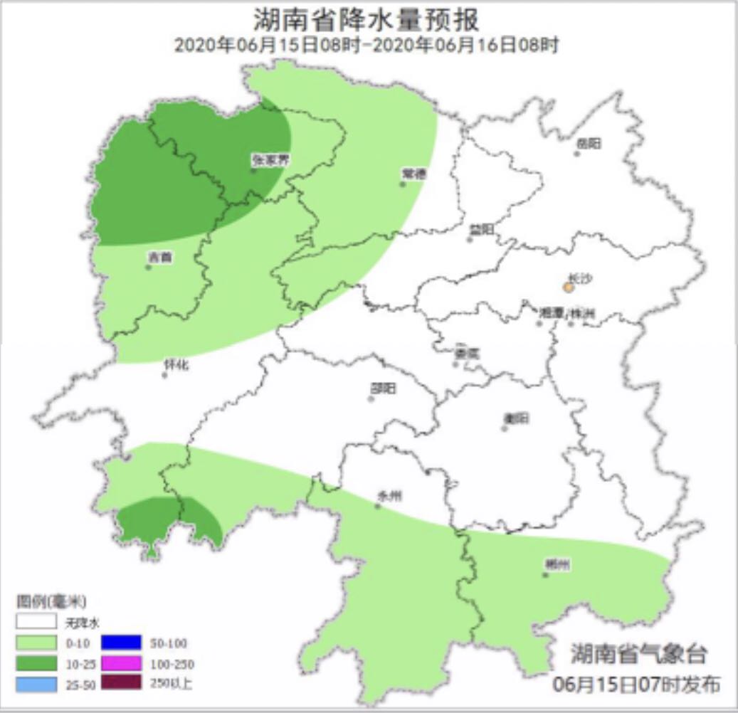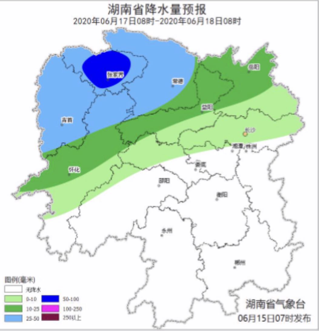 图1 湖南降雨量预报(6月15日08时至16日08时)