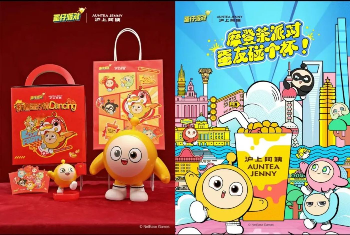 沪上阿姨则巧妙融合奶茶社交属性与《蛋仔派对》的 “搭子文化”,贴合新春送礼、聚餐交友场景,在年轻群体中强势种草。从效果来看,玩具盲盒类周边的魔性玩法吸引众多粉丝晒单,社交平台上 UGC 笔记超 10000 条,联动进一步延续到游戏内,定制地图将蛋仔 IP 融入摩登东方茶饮,有效强化品牌心智,地图游玩人次超 20 万。元宵节期间,沪上阿姨又趁热打铁,与热门电视剧《国色芳华》联名。