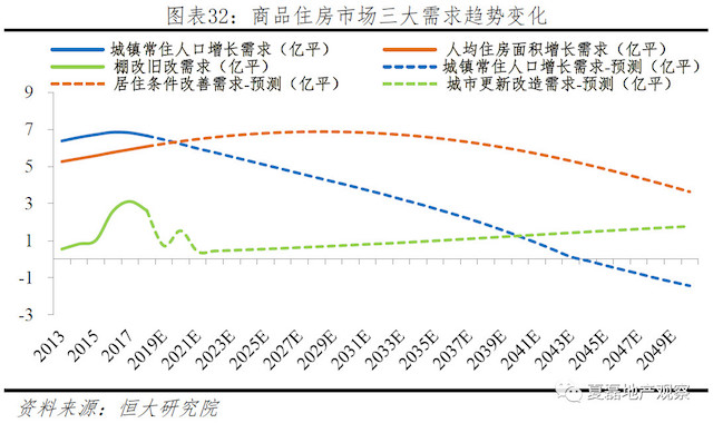 其中,城镇常住人口增长需求中99.8%来自于快速城镇化阶段下大量农村人口进城,仅0.2%来自于城镇常住人口自然增长。城市更新需求在2019~2020年主要来自于棚改货币化安置;2021年开始以旧城改造为主,并随城市存量面积增长而持续增加。居住条件改善需求在未来十年持续增加,并从2020年开始成为最主要需求来源,市场进入改善时代。
