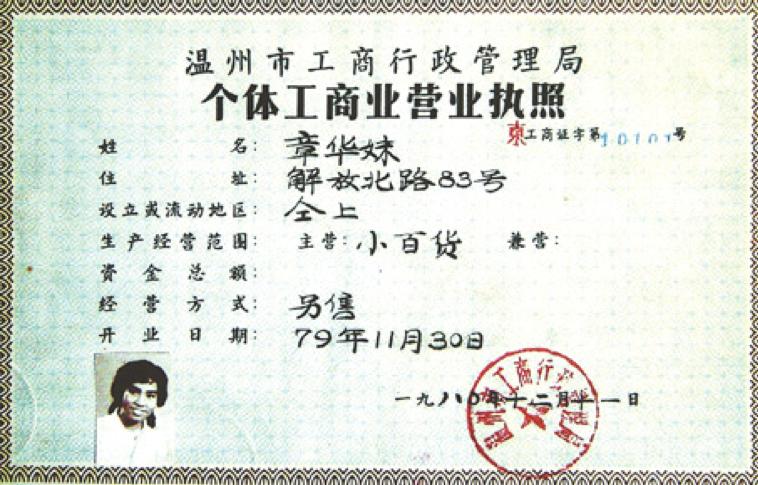 (图片来源:姚芃.我领到全国第一张“个体工商户营业执照”[N].法制日报,2008-10-30.)