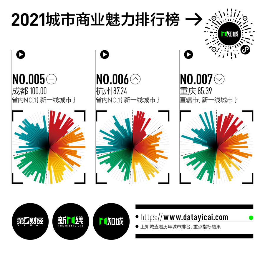 杭州今年回归新一线城市的第2名。在保持数字经济发展优势的前提下,杭州的实体商业也表现出较好的抗风险性——咖啡馆数量不降反增、入驻品牌数量位列全国第2,同时还吸引到日本知名书店品牌茑屋首店的落户。生机勃勃的商业氛围增益了人的活力。城市人活跃度、生活方式多样性的提升,是拉动杭州排名回升的主要原因。