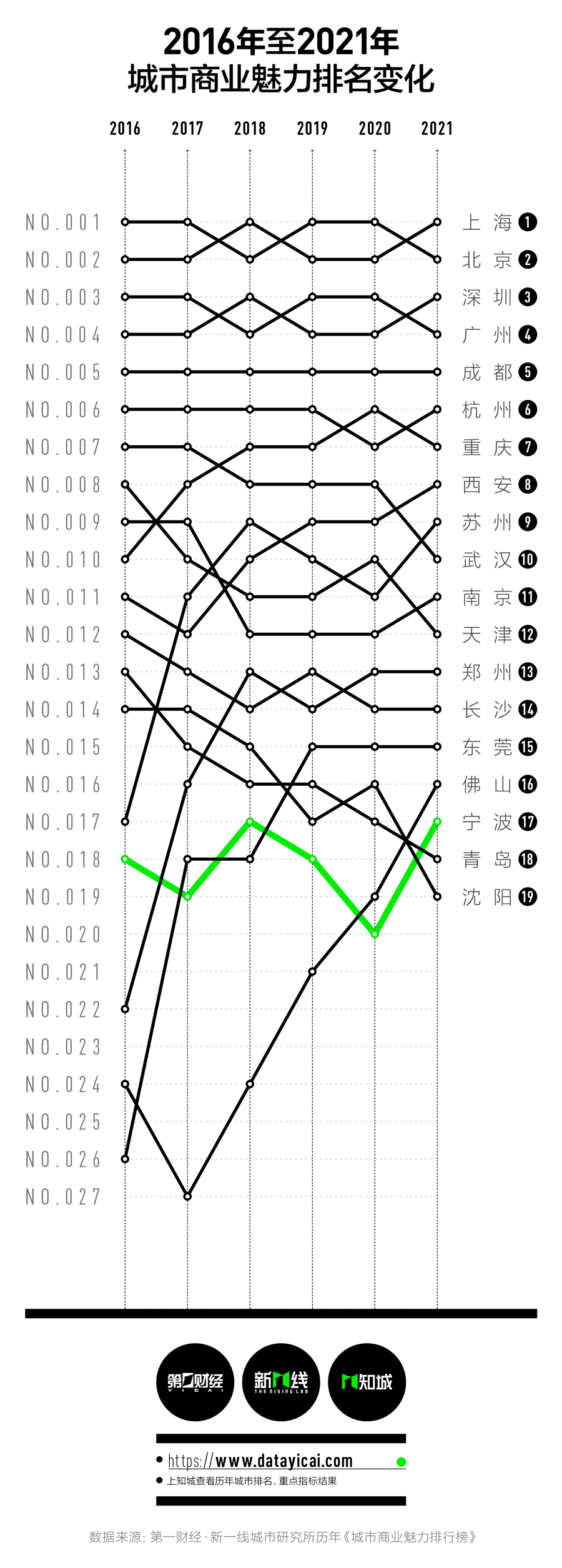 第一财经·新一线城市研究所于2021年5月27日发布了《2021城市商业魅力排行榜》,连续六年按商业资源集聚度、城市枢纽性、城市人活跃度、生活方式多样性和未来可塑性五大维度为中国内地337个地级及以上城市的商业魅力指数排名。