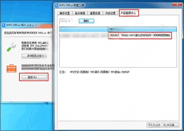 7、点击高级,在配置工具中的“产品管理中心”,可以看到三个组件都是无限制,说明用户可以完全免费使用。