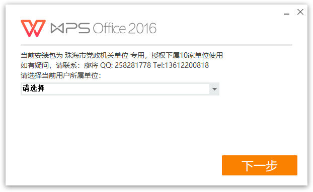 1、下载解压,得到wps office 2016珠海市政府专业增强版;