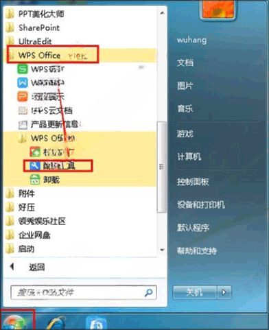 6、打开WPS的配置工具(系统“开始”-所有程序-WPS Office 专业版-WPS Office工具-配置工具)