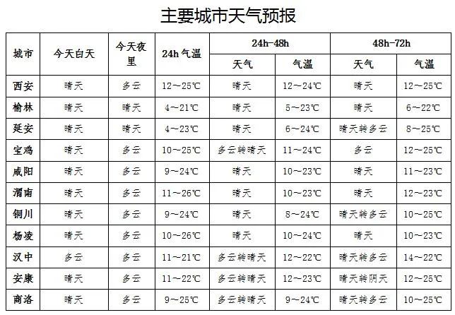 4日:全省多云。陕北、关中北部有6~7级偏北风。