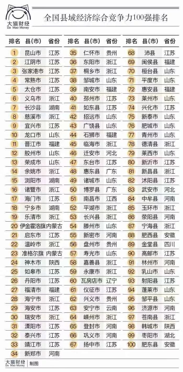 刚刚讲过面临的机遇也好挑战也好,我们再来看下2017年百强县的分布情况,我们的百强县其实有很多的规模超过了很多地级市,甚至有的头部的超过了省会城市,这个县级的消费能力是非常强的,当然这个百强县只能作为我们的参考,由于产业结构不一样,有些百强县消费力没有那么强,但它是一个比较可靠的数据。