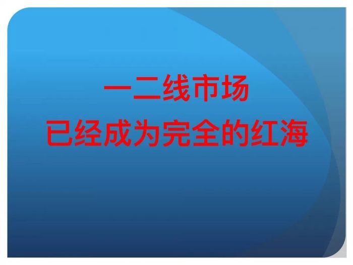 所以说我们刚刚讲的那些方面,我们眼睛看到的是一二线市场,特别是北上广深成这些省会城市为主的一线市场和部分二线市场,那些地方面临的挑战和困境全部都在,我们必须要把眼光放低一点,放远一点来进行品牌的创立,那么就这样我们要把目标往下走,我们要看到我们的县级市场甚至是镇级市场,也就是所谓的三四线或者是四五线这样的市场看看还有没有机会。