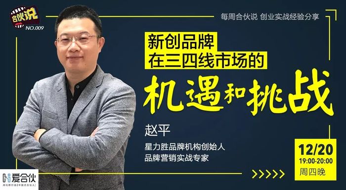 赵平(peter),星力胜品牌机构创始人,品牌营销专家。peter是我在一次上海的见面会认识的,当他介绍完自己的经历后,我就很想当面和他进行交流,在活动上就与他面对面敲定了来合伙说做分享这件事情,他在品牌零售方面有非常丰富的经验,特别是在三四线城市,如何避开北上广深一线城市白热化的竞争,开辟出一条差异化的创业路线。