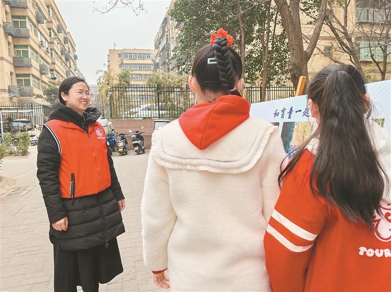 钟敏(左一)参与盲童看世界公益项目志愿服务