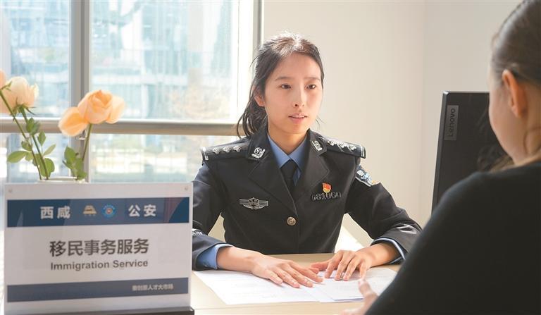 年轻民警刘树真将这一切看在眼里。她所在的西安市公安局西咸新区分局出入境大厅,紧邻秦创原人才大市场。面对越来越多前来出入境大厅办理业务的外籍人才,英语专业毕业的刘树真,内心涌起一股“功成必定有我”的责任与担当。