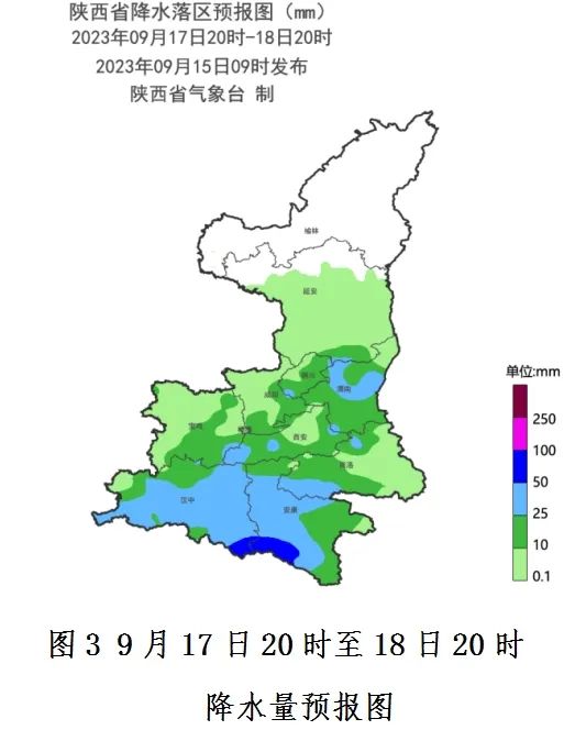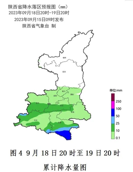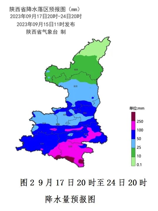 陕北南部、关中北部25~50毫米,关中南部、陕南北部60~80毫米、陕南南部70~150毫米,局地可达200毫米以上(图2)。
