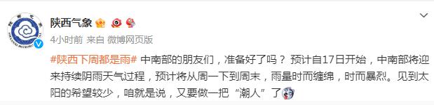 原标题:《最高温降10℃!陕西下周都是雨!刚刚,重要天气报告发布…》
