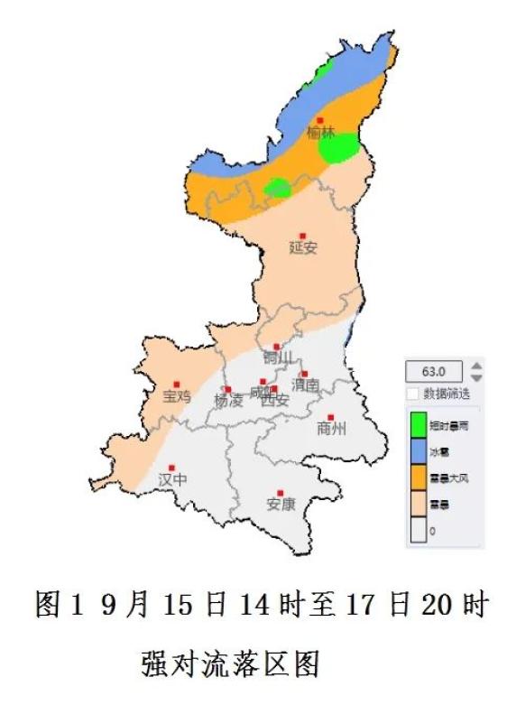 受冷涡底部分裂短波槽影响,15-17日陕北、关中北部有雷暴天气,陕北中北部局地有短时暴雨、雷暴大风或冰雹天气。主要影响时段:15日午后至傍晚、16日夜间至17日上午。
